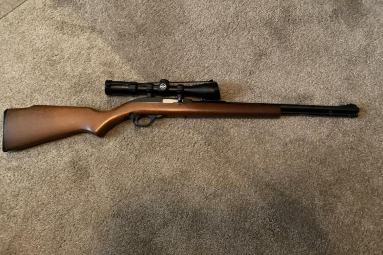 Gently used Marlin Model 60 Semi Auto 22LR, tube fed 18 shot I think with Simmons Scope 3x9