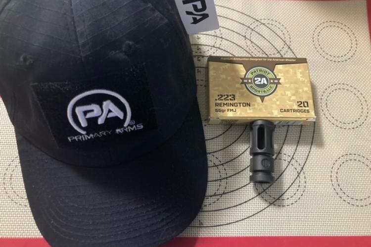 PWS muzzle device with never used pin and weld hole. 3 open and 3 closed slots to combine flash