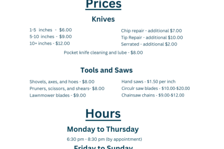 Precision Edge Sharpening offers knife, tool, and saw sharpening. We do all sharpening by hand, no