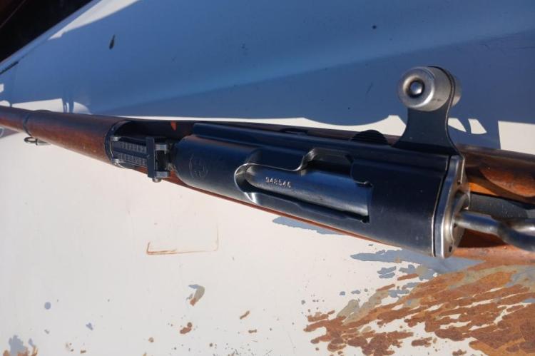 Swiss k31 straight pull. Still has soldier tag. Numbers matching. From 1951. Real good target