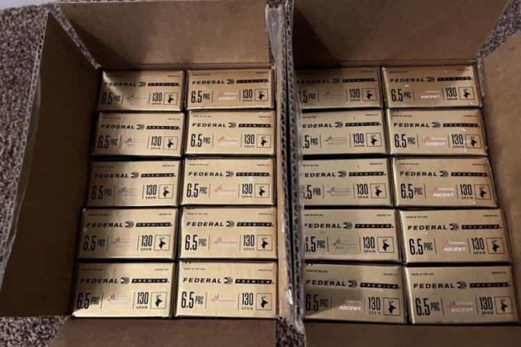 20 Boxes (2 Cases) of Federal Premium Terminal Ascent 6.5 PRC Ammo. Same lot number.