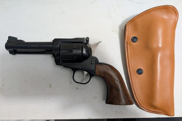Ruger New Model Blackhawk in 41 Magnum. Comes with custom wood grips, original plastic checkered