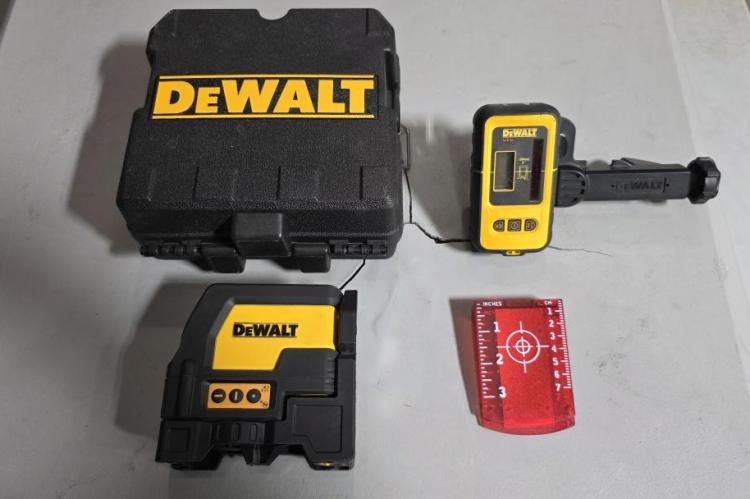 DEWALT DW0822 cross line & 2 plumb laser level, DW0892 laser detector 165’ & fine adjust multi mount
