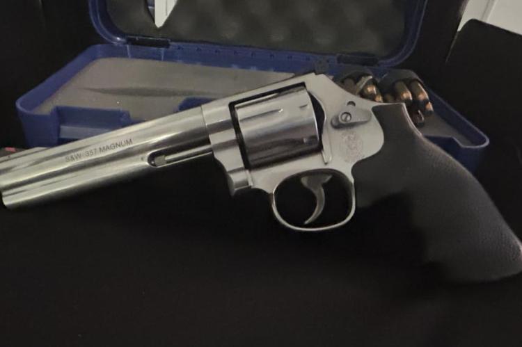 Very nice Smith 6" barrel 686 plus .357 Magnum 7-shot with 2 speed loaders and factory case. Very