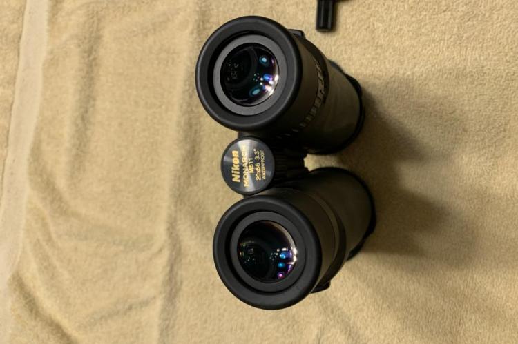 Nikon Monarch 5 20x56 Binoculars- glass is excellent condition, exterior some scuffing. Super pair