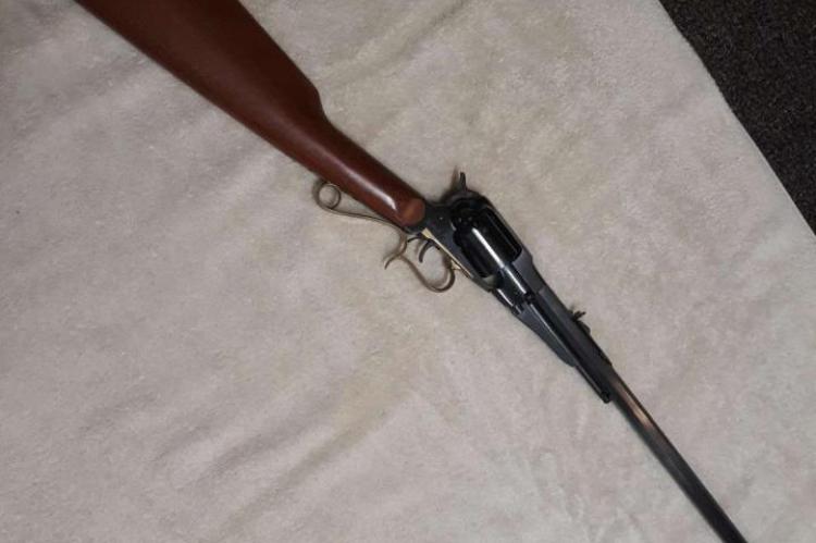 New, unfired 'safe queen'. 44 cal Black Powder shootin iron. Prettier than the photos show