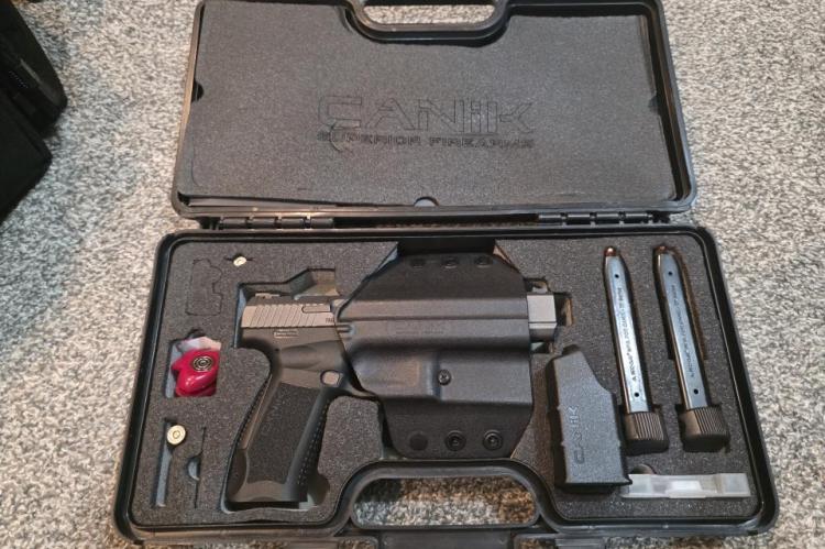 Canik TP9SFX. 2 mags, holster, original case, all rear sight plates. 500 rounds of 9mm in an ammo