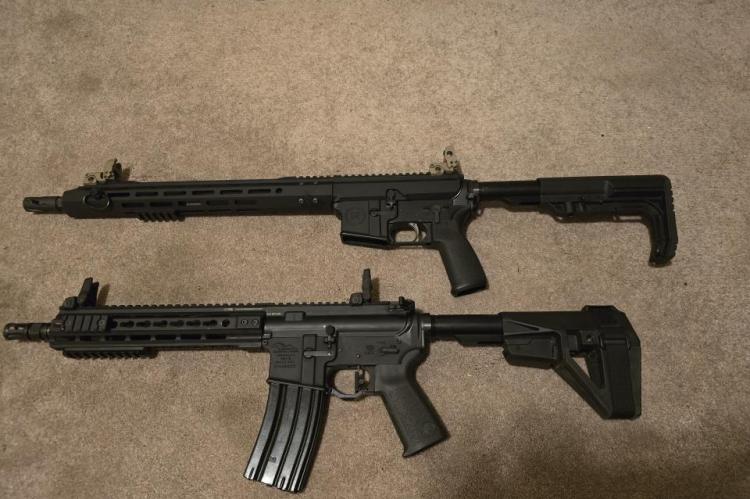 The one on top, 7.62x39 In AR platform hase enhanced mil spec trigger, shoots great, comes with