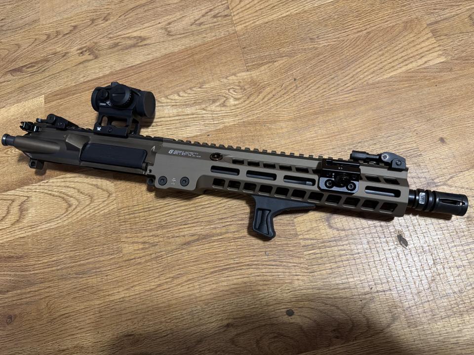 Newly built 11.5 upper. Only a 100 rounds through it. Runs great. Parts list below. Prefer $700 cash but open to pistol trades. $625 without the green dot optic.