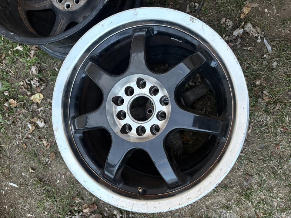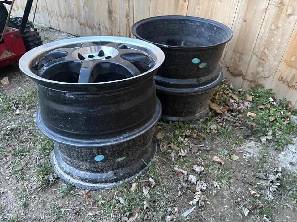 Set of four 16” Aluminum rims. I bought them for a project and then never ended up using them. I bought them used, so unfortunately I only have 3 hub cabs, one was missing when I bought them, but you can buy they online. They are “universal” i.e. can be used as 5 lug or 6 lug