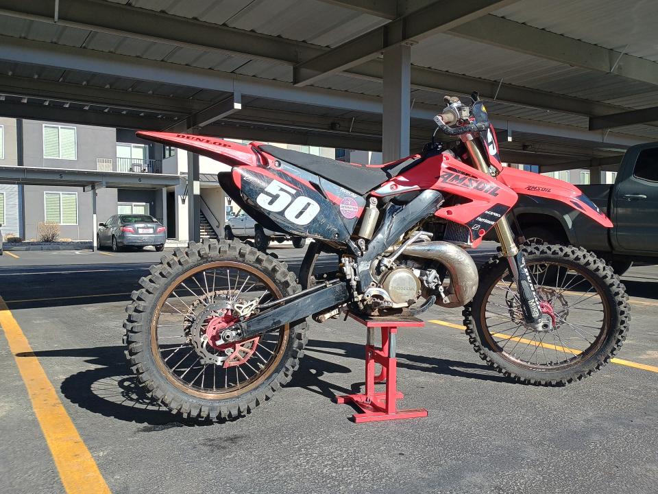 Runs and starts well. I've been running the high end of the recommended oil/fuel ratio, plugs are cheaper than pistons. Fmf gnarly, shinko cheaters on warp 9 wheels. Newer cylinder. I can take the pipe off and get a photo shortly