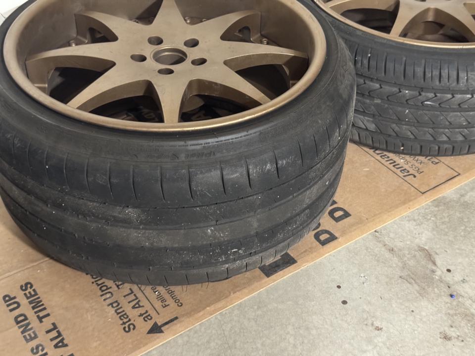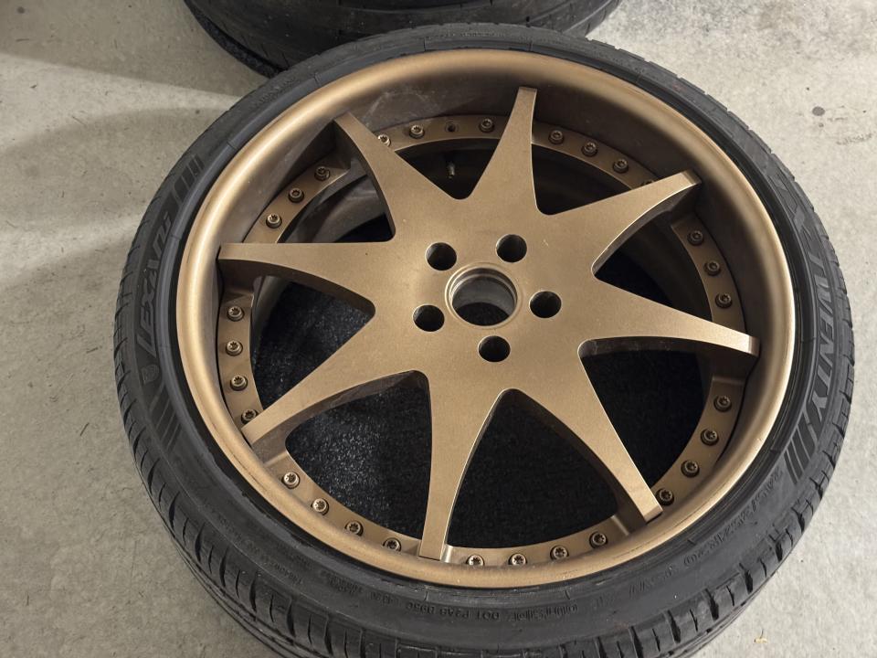 Auto Sold my Mercedes, so these are just laying around. Forged, 3-piece wheels powder coated bronze, with tires. 5x112 bolt pattern with a 66.56 hub bore. Open to trades. Log in or register to post comments