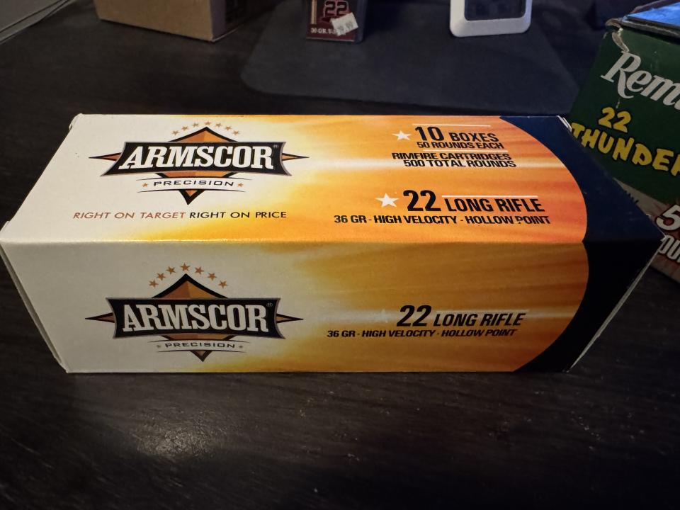 Ammo & Reloading .22 LR ammo -Remington ammo $30 -Armscor ammo $25/box of 500 Prices are OBO, only have 1 box of the Remington but have at least 5 boxes of the Armscor. Log in or register to post comments How many boxes do you have… How many boxes do you have left? Mon, 12/01/2025 - 21:37 Dylan Hawkes Log in or register to post comments