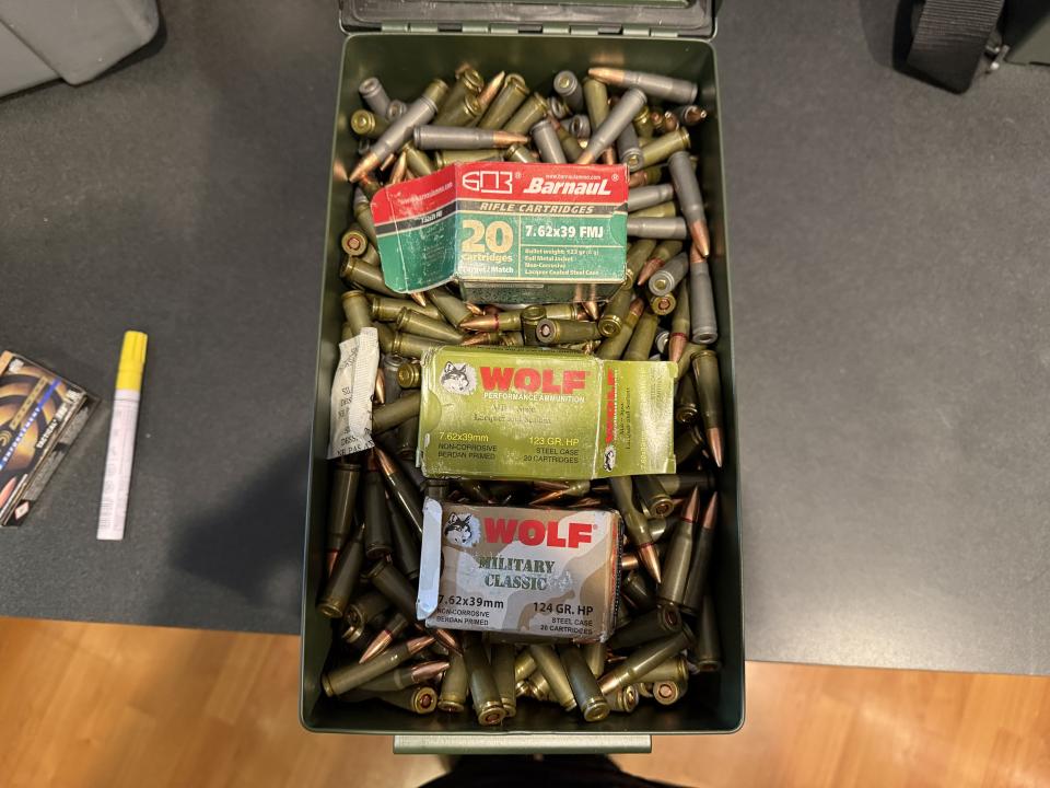 Here we have ROUGHLY 2200 rounds of 7.62x39. Some steel, lots of brass with coating. Quite of bit of FMJ, and a good amount of hollow point. Will include the ammo can you see the rounds in. I am pricing the ammo very aggressively. The cheapest I can find ammo like this is 55 cents a round. I'm pricing it well below that. May entertain firearm related trades. Could entertain full or partial trades for 9mm. Thanks gents!