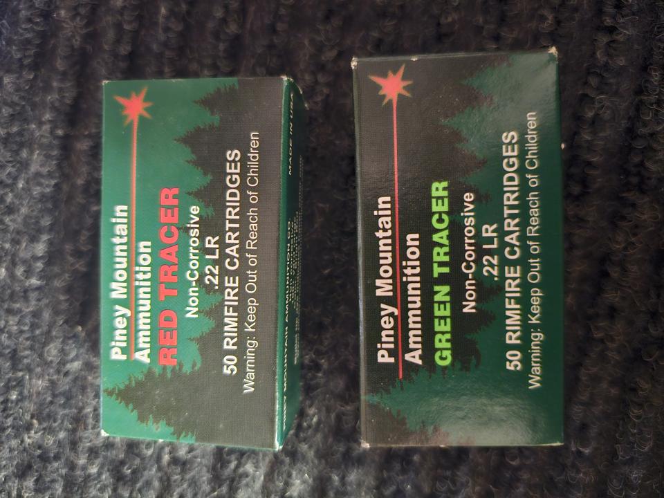 Ammo & Reloading I have 2 boxes of 50 rounds. 1 red and 1 green. 50.00 a box. They light up right out of the barrel. It's like star wars laser guns! Log in or register to post comments