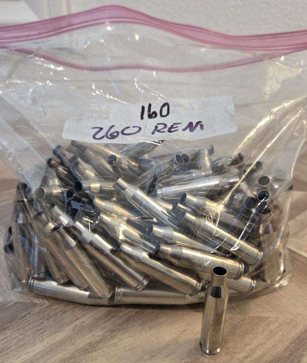 Ammo & Reloading 160 nickel plated once fired 260 Rem brass. These are all from Federal Premium cartridges. Not cleaned or sized, but some primers removed. Buyer must be willing to pick up in Idaho Falls and pay in cash. Log in or register to post comments