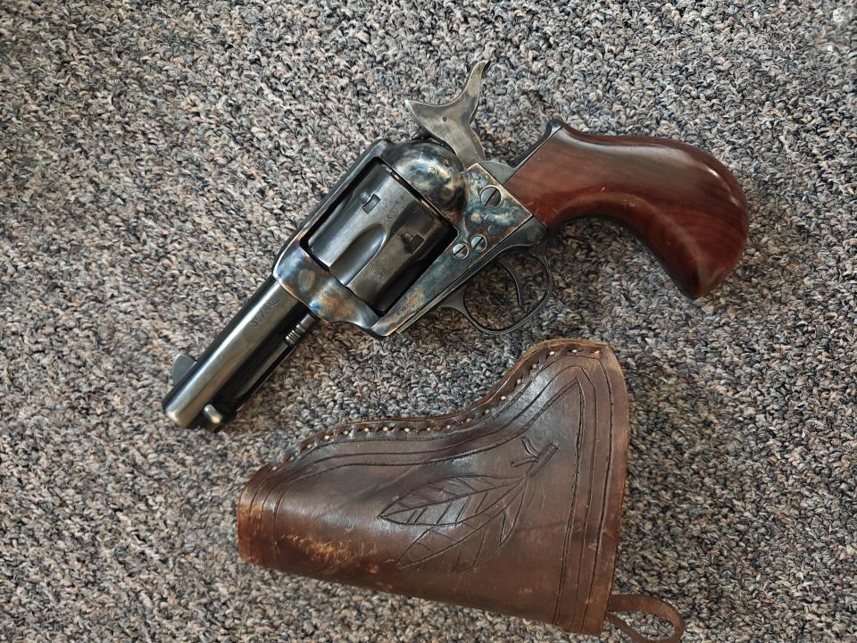 Selling a Taylor’s & Company 1873 Cattleman revolver chambered in .357 Magnum with a 5.5” barrel. This is the color case hardened frame with blued barrel model, one of the nicer versions. I paid extra for it.