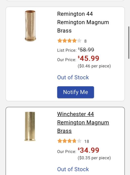 44 mag rem brass .35 cents each (700) available bagged in 100 cnt