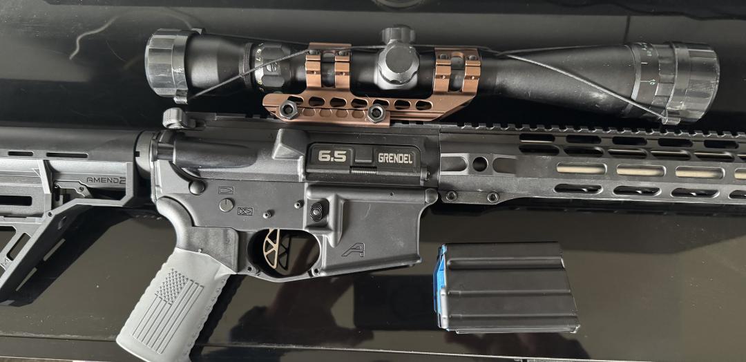 Firearms & Hunting 6.5 Grendel rifle, 20 inch stainless steel steel heavy barrel, drop in rise armament trigger. Custom stock and flash suppressor. Comes with a 10 round mag.Great shooter only five rounds put through it. Log in or register to post comments