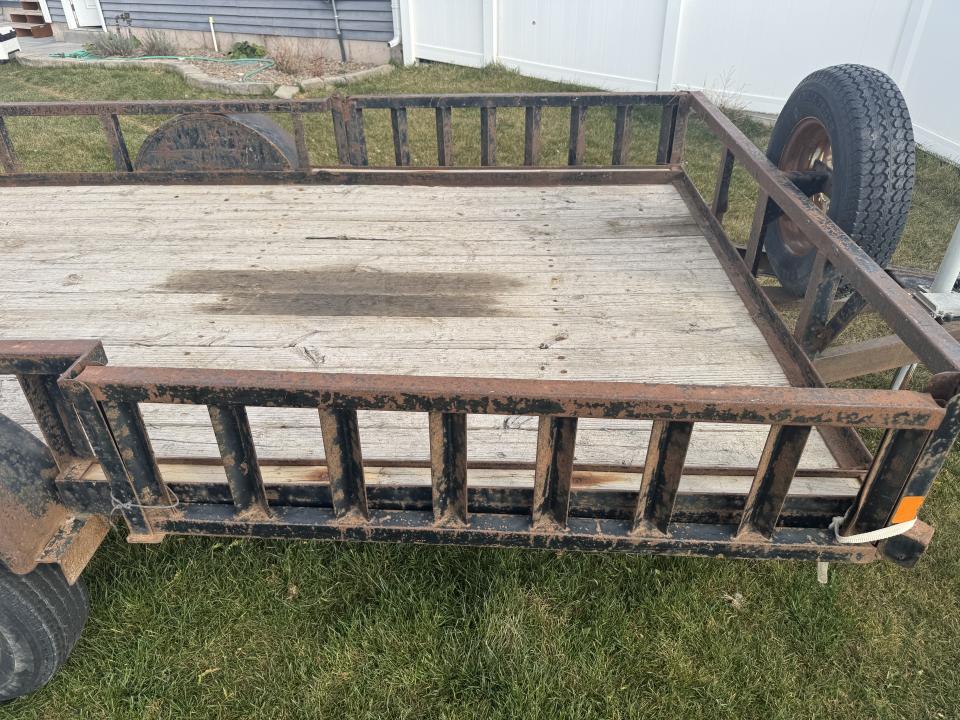 Heavy duty trailer with ramps. Can rear or side load. 6 1/2 feet by 12.3 feet. Trailer axle was upgraded to a lippert 3,500 lb axle and spring kit with electric brakes($700 axle) trailer is in good shape and has good tire tread. Pulls really nice. Perfect for side by side, quads, lawn care, ect.