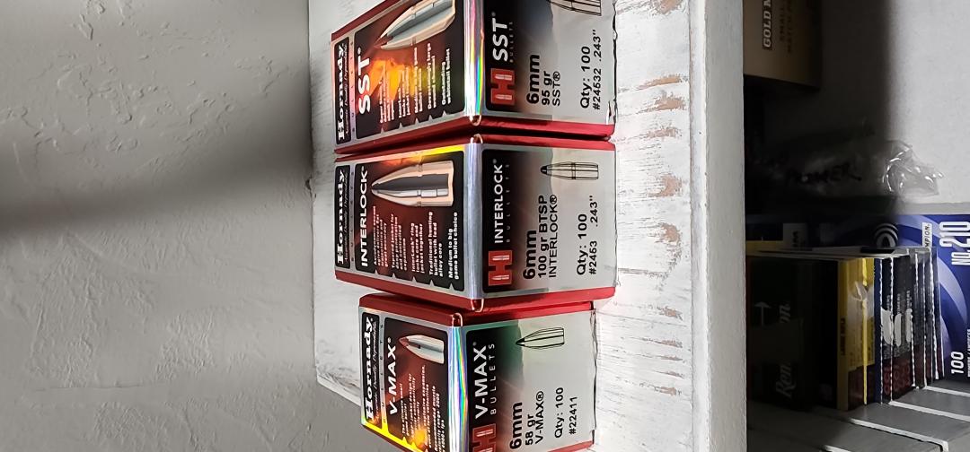 I have a few different types of .243 bullet tips, they are all sizes that im not going to make. I have 100gr. BTSP (25$), 95gr SST (25$), 58 gr VMAX (25$), and 110gr A-Tips(50$). Or you can take all for 100$ if you know the prices at a gun store than you know im giving a pretty good deal.