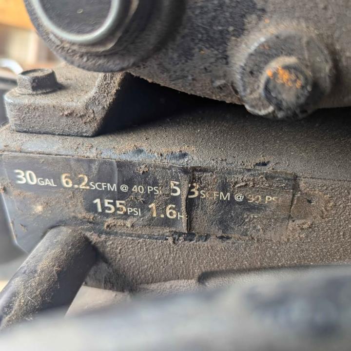 The Husky compressor has a 30 gallon tank with a 2 HP motor. It has a cast iron pump and 155 max PSI. Comes with wheels too.