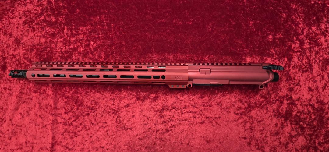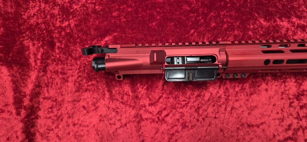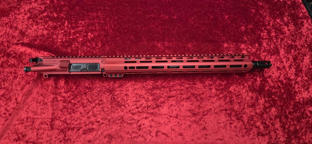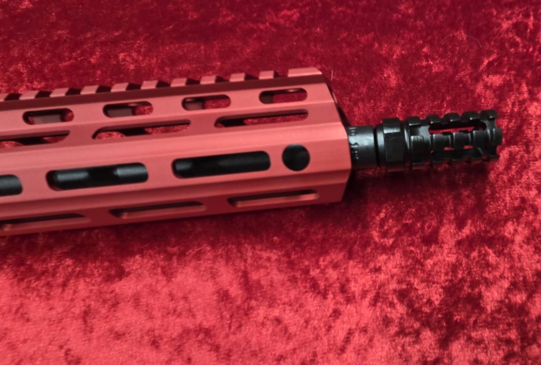 Firearms & Hunting amazing red anodized aluminum upper and hand guard 16 inch 5.56 barrel with pineapple style muzzle brake comes with the BCG so plug it on the lower and ready to go Log in or register to post comments