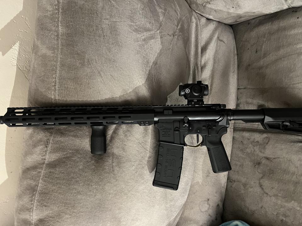 Firearms & Hunting Anderson lower with rise armament 3 pound trigger and aimsport upper 5.56 crimson trace sight wanting to trade for a pistol Log in or register to post comments