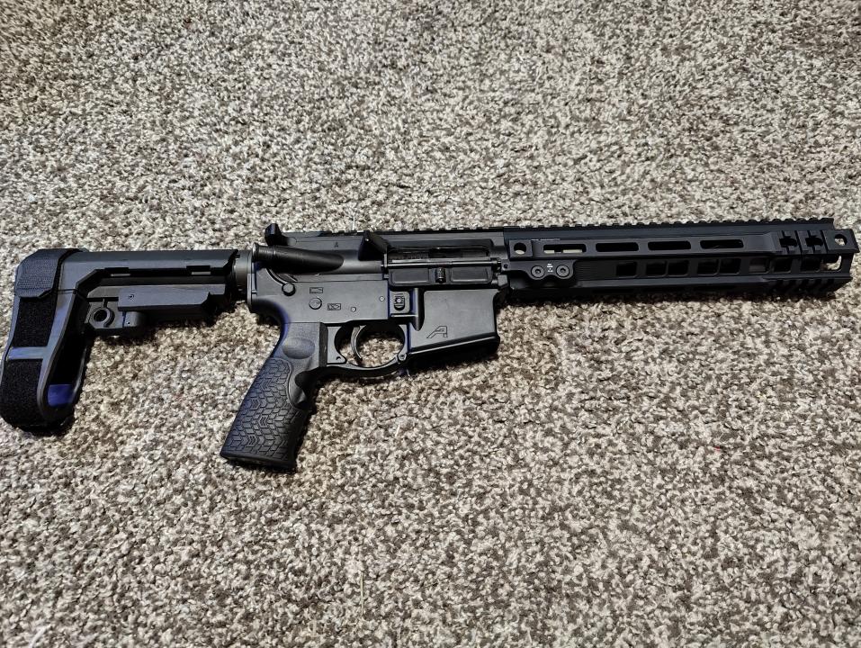 This is a custom AR15 build, it's currently configured as a pistol. It has a geissele mk4 10.5 inch handguard, brand new 10.5 Rosco barrel in 5.56 zero rounds have been shot through it. A complete Aero Precision receiver set with strike industries receiver parts and charging handle. The BCG is unmarked so not sure on the brand. The barrel is brand new, but the rest of the gun has less than 100 rounds through it.