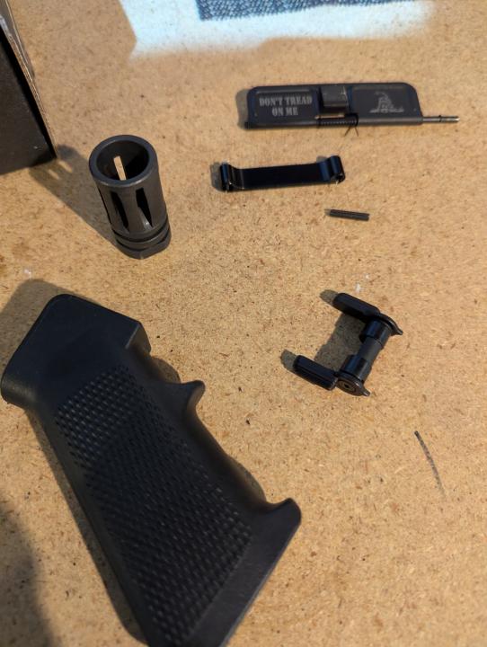 Firearms & Hunting Magpul carbine stock OD green - $25 Ambi safety - $20 A2 flash hider - offer Dust cover - offer Ar pistol grip - offer Trigger guard - offer $50 for everything Cleaning off some shelves. Maybe these parts will help somebody out. Log in or register to post comments