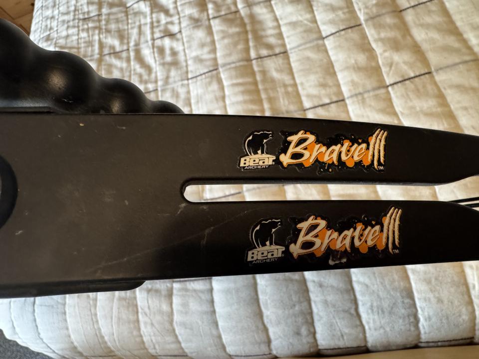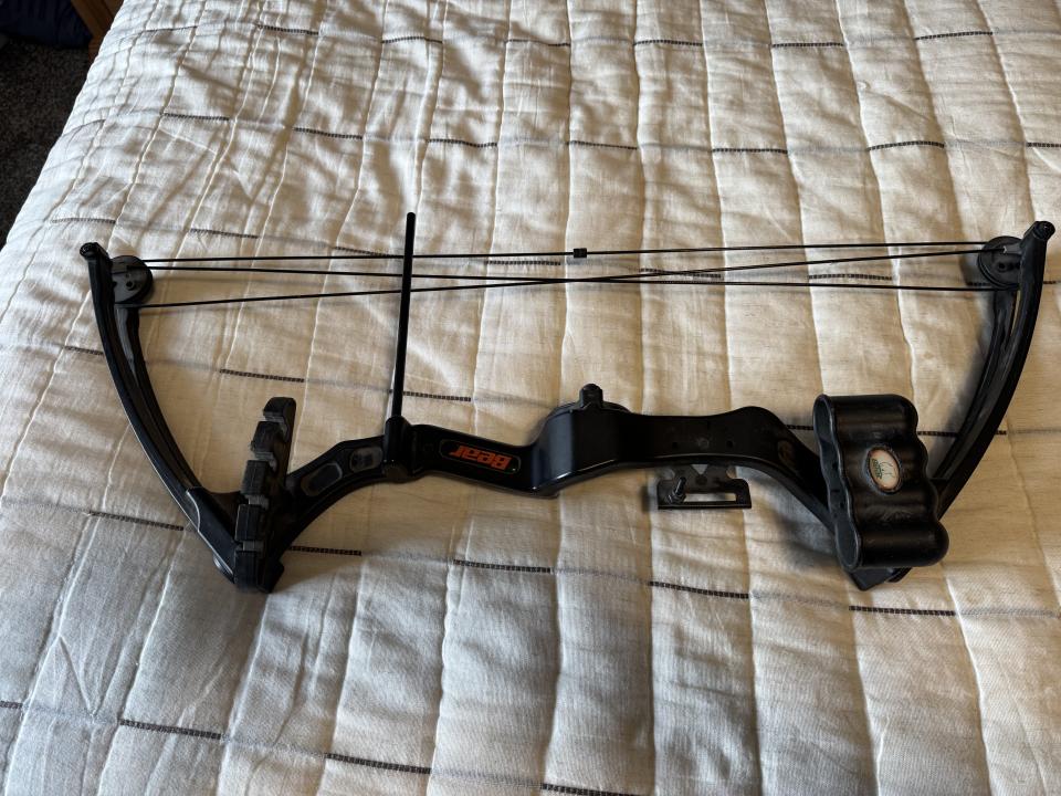 Archery Great youth compound bow. Bear Brave III Draw weight I believe is 15-25 lbs. included is quiver, 2 arrows, pin sight and whisker biscuit style rest. Perfect starter bow for youth or children. Log in or register to post comments