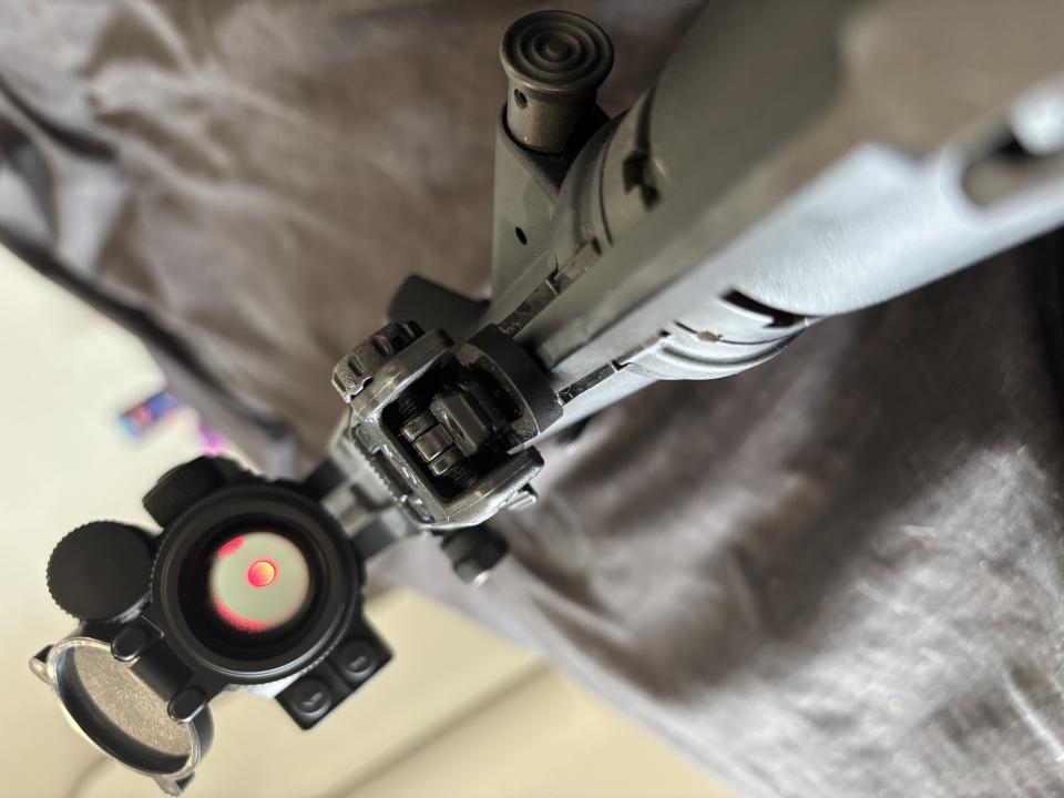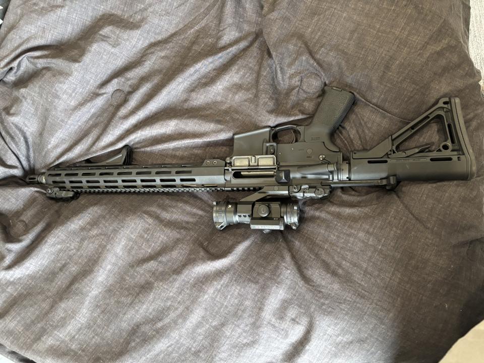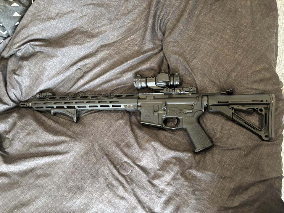 This Ar15 is super clean and insanely fun to shoot. Very accurate and 100% reliable. It’s a delton lower with a bom bolt carrier group and buffer spring, magpul pop up sights, stock, grip, and for grip. Vortex red dot and areo precision upper. Text me to come by and check it out. (986)231-7694