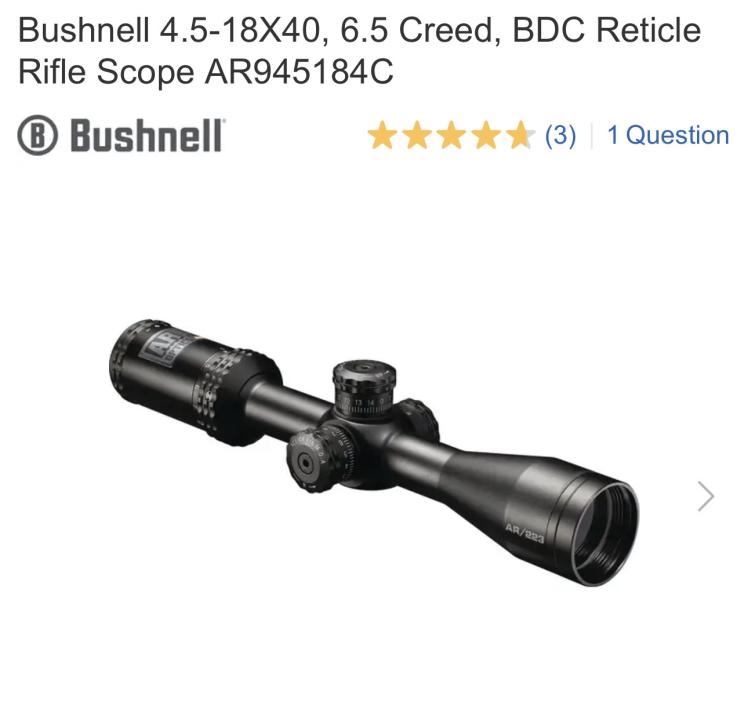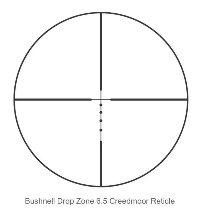 Since its introduction, 6.5 Creedmoor ammunition is a favorite of long-distance shooters and hunters alike. Bushnell®'s AR Optics 4.5-18x40mm scope with Drop Zone 6.5 Creedmoor reticle is designed to maximize the round's performance by providing holdover points for shots out to 600 yards. Tacticalstyle target turrets allow lightning-fast adjustments, and the side parallax focus allows clear target images. The fully multi-coated optics allow for a bright, crisp sight picture and are housed in a durable 1" aircraft-grade aluminum tube.