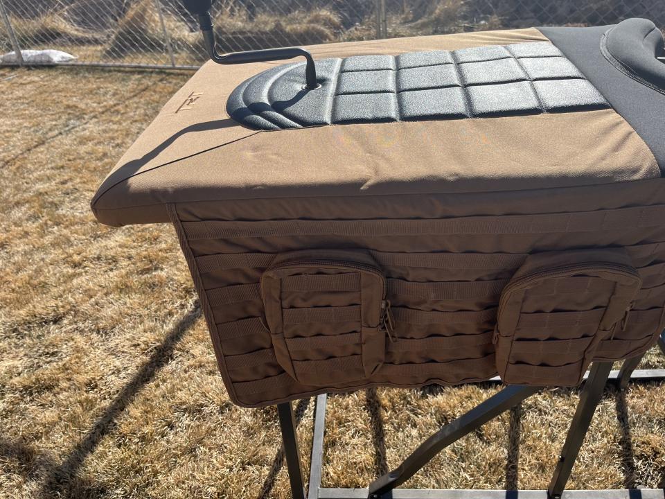 This shooting bench is in really good condition even though it is a few years old. It’s really nice to take out to the desert and be able to shoot with a comfortable rest for the gun and for your arms. It folds up flat and comes with a travel bag. It weighs 37 lbs.