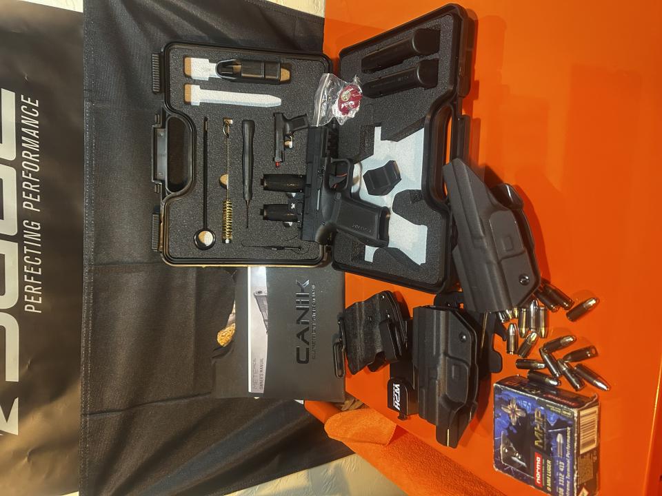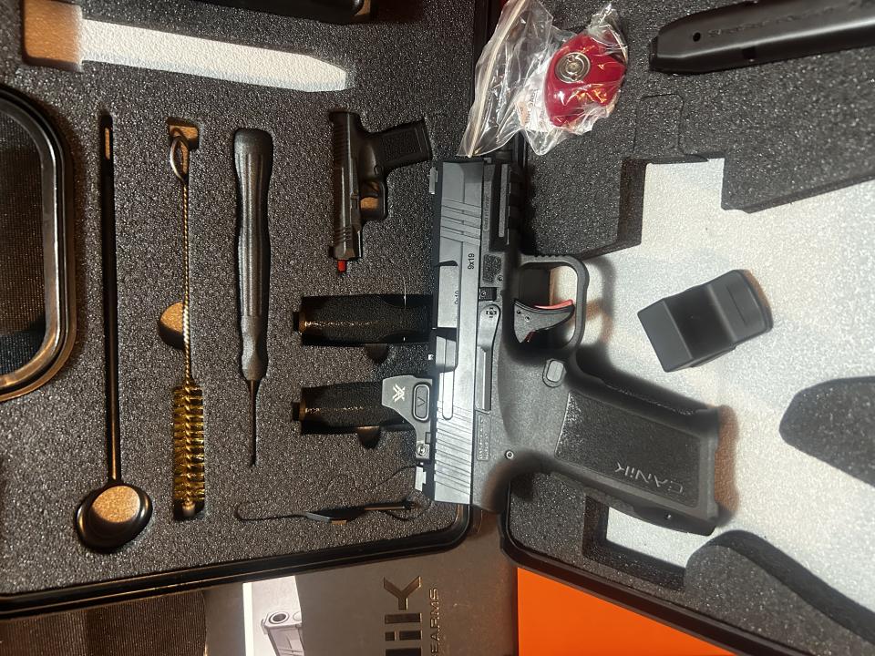 Canik mete mc9L with vortex ccw. Never been fired. Comes with 2 we the people holsters 1 IWB 1 OWB and holster mount. Original case with Canik holster and goodies. 2 mags and some self defense ammo( 40 ish rounds). Purchased as a carry gun but yet to swap from my ol reliable. May consider trade for a ruger rxm.