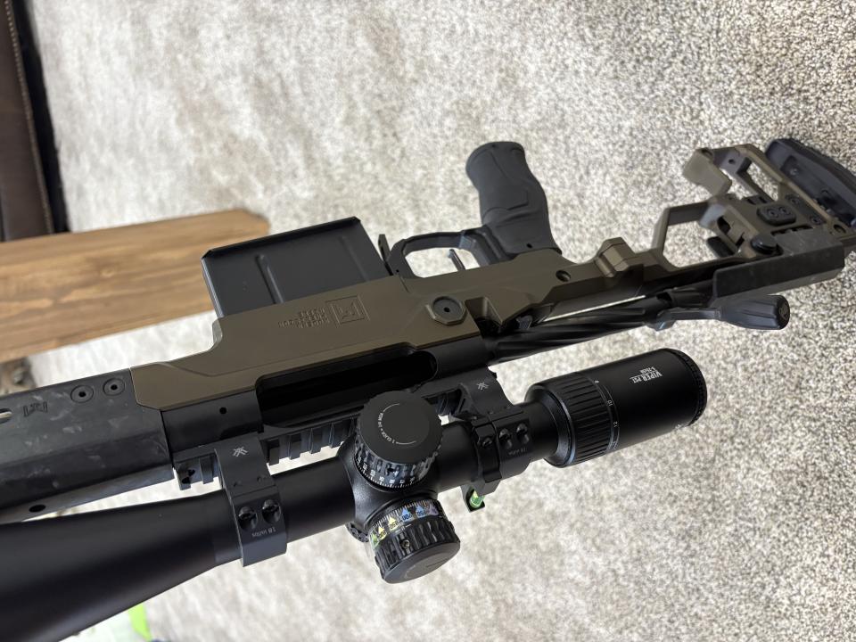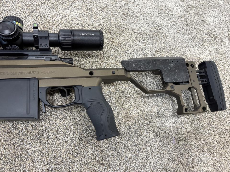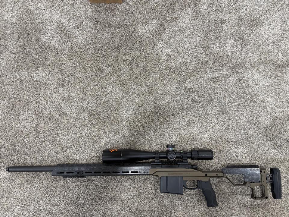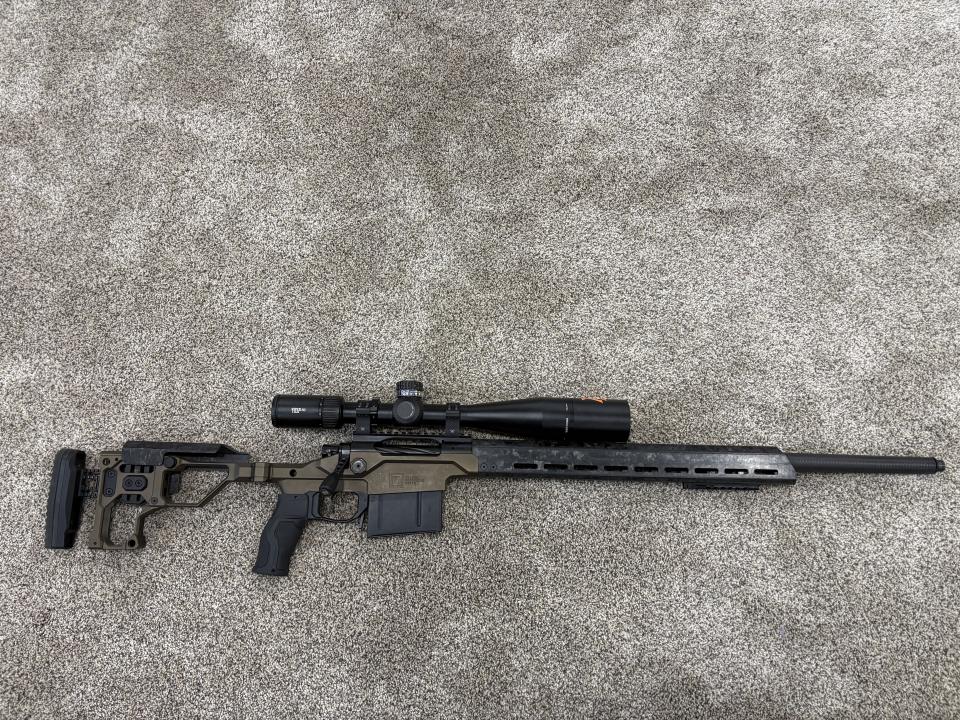 Like new Christensen MPR in 300PRC. Carbon fiber wrapped barrel, in bronze color. Shoots sub MOA and preforms as expected. Comes with factory muzzle brake 5 full boxes and one partial of factory 225gr Hornady eldm. Scope is not included, open to reasonable trades