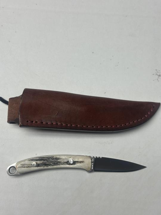 The bird and trout model is hollow ground, which means its easy to put a keen edge on it. It is mirror polished and has genuine Indian sambar stag handle scales.