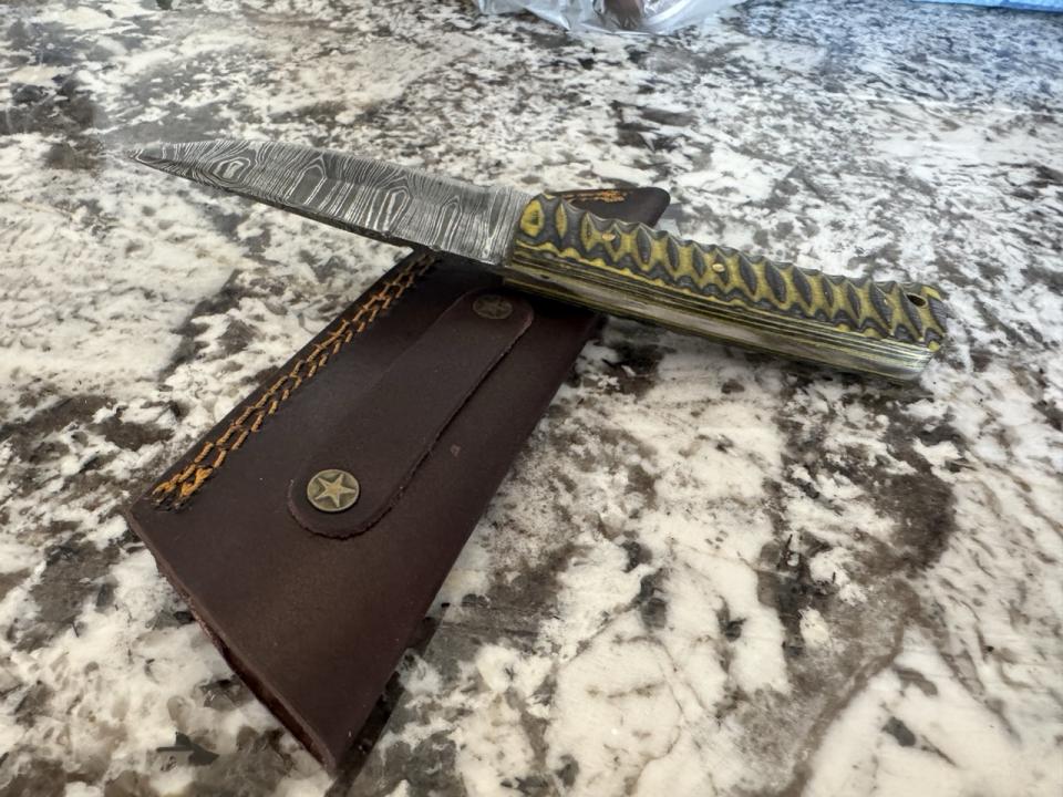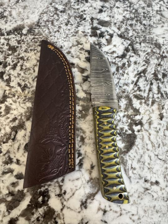 4” Damascus steel knife; sheath included