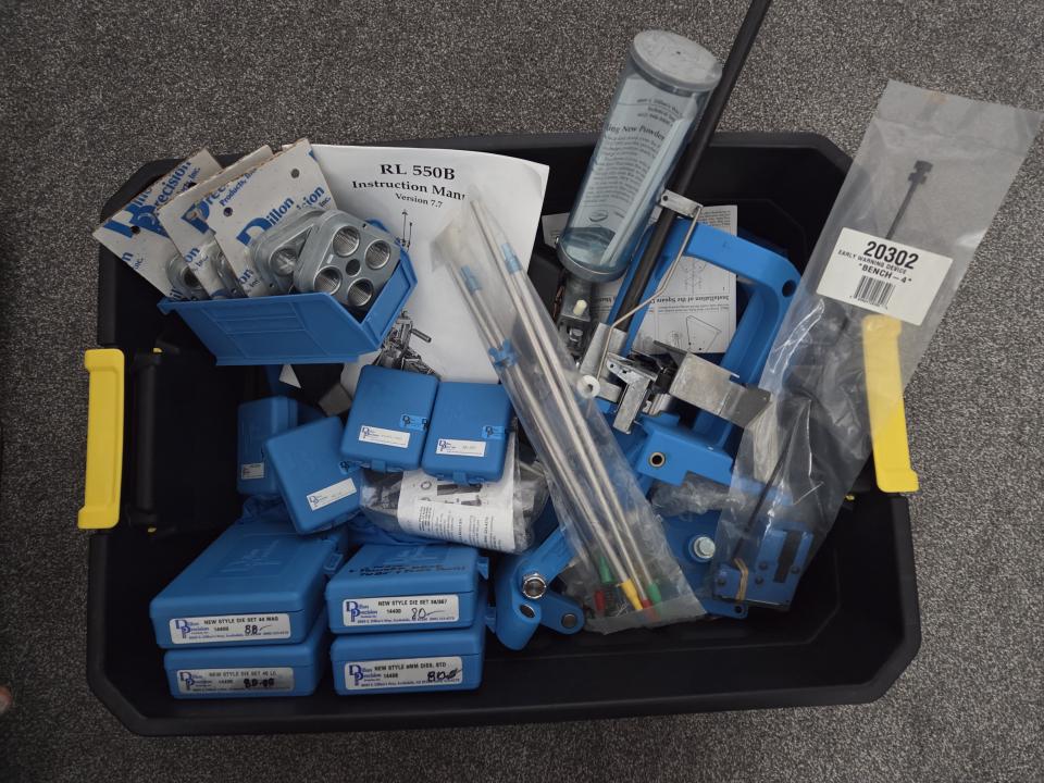 This is a Dillon 550B with everything required to start reloading the most popular pistol calibers.