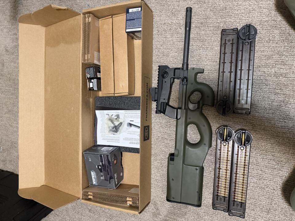 Firearms & Hunting Fn PS90 5.7x28mm 1 mag through it very clean 4 mags, 2 of them full with Speer gold dot Fiochi box has like 50ish rounds in it $1250 Idaho Falls Text Only 208-270-2962 Will meet at Guns N Gear to transfer in your name. Will be free to do that Log in or register to post comments