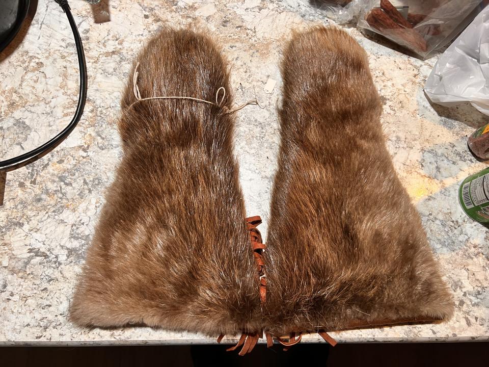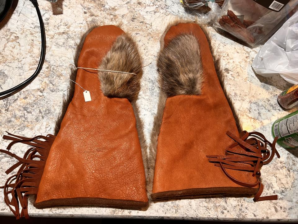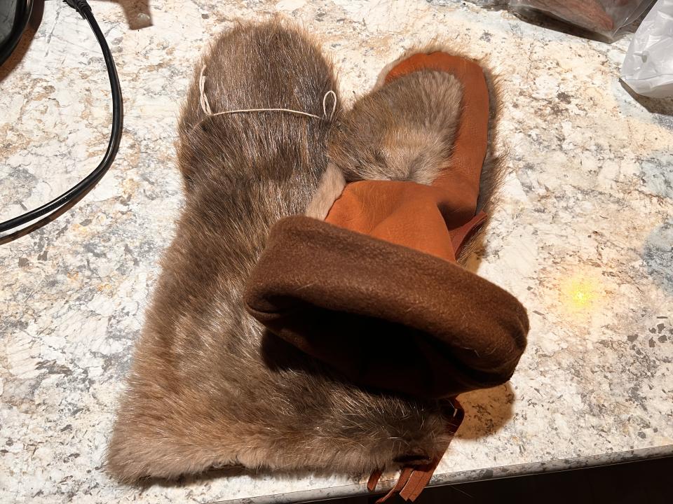 Great pair of fur mittens. Cant beat these for hunting or a survival situation. I have my personal pair and have never got cold in them in -35. I have a pair in the pictures and another pair with black leather. $200 each pair obo. Can ship if needed they are located in Boise. 307-231-6108