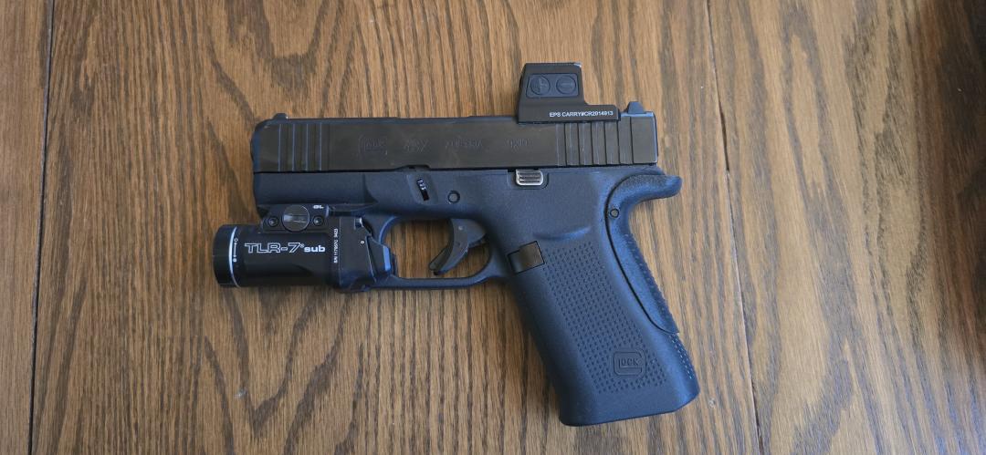 Selling my Glock 43x. Has a Holosun EPS Carry 2moa red dot, Streamlight TLR-7 sub, 2x Shield Arms gen 3 15 round magazines with the metal mag catch, and Rapid Rngineering medium size beavertail. Has probably 500 rounds through it. Comes with original case. I also have a t rex arms left handed IWB holster if you're left handed.