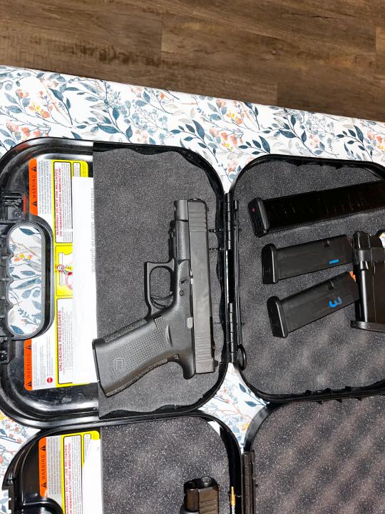 Glock 48 MOS 9x19 only shot a handful of times really nice just need the money for medical bills. I had a stipple done 200$ my loss your gain Comes with holster ETS magazine two standard and two shield arms 15rnd mags and I believe two more standards if I find them I'll throw them in too