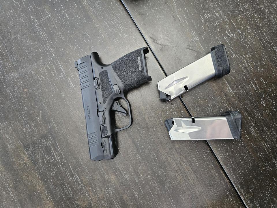 My Hell cat comes with the original clip that holds 10 rounds and I purchased a high capacity clip that holds 13 rounds. (made by Shield Arms $30 value used )