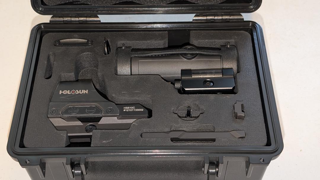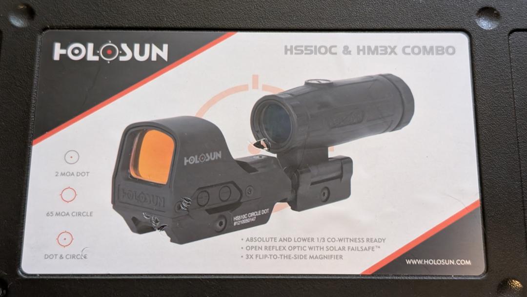 Holosun HS510C Open Reflex Sight paired with the HM3X 3x Magnifier. This is one of the best "bang-for-your-buck" optic setups on the market, offering a huge field of view and the ability to instantly transition from 1x to 3x magnification.