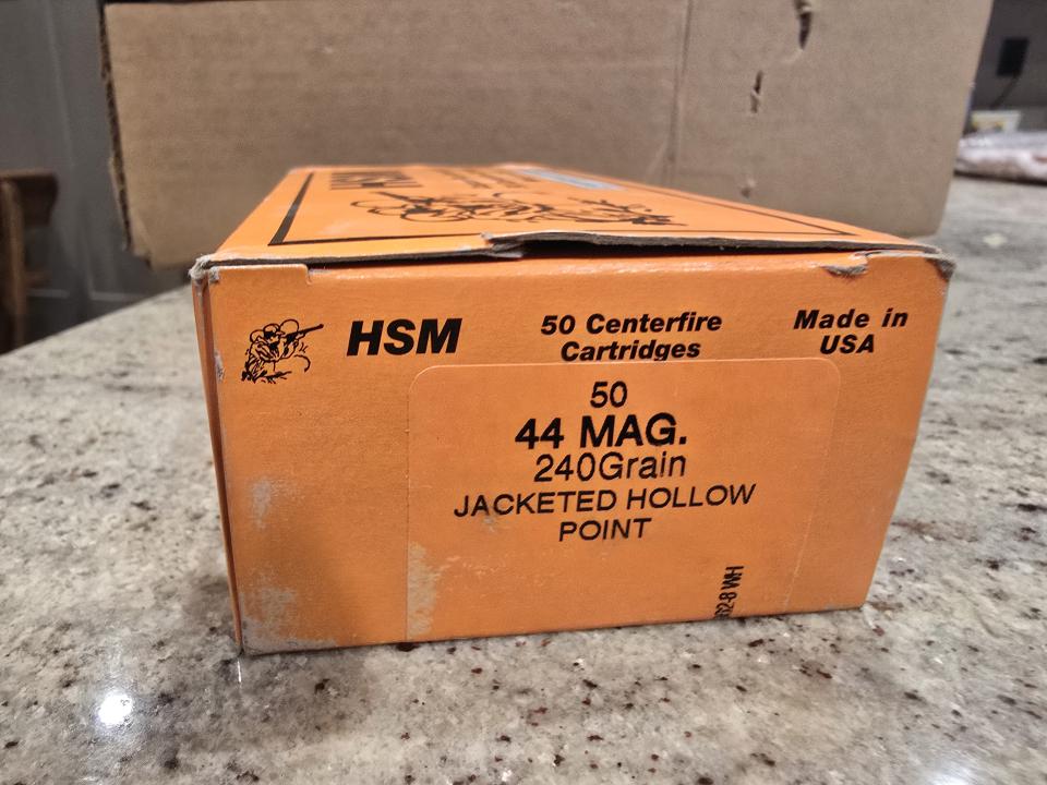 Ammo & Reloading I have 12 boxes of HSM 44 mag 240 grain jacketed hollow point ammunition for sale. Asking $50 per box. 50 cartridges per box. Open to trades. Call or text would be best. Log in or register to post comments