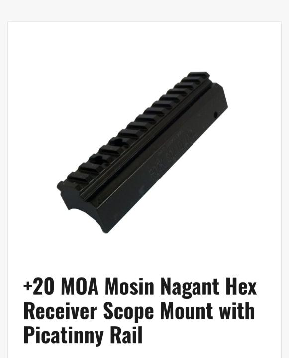 Firearms & Hunting Im looking for a +20 MOA Mosin Nagant Hex Receiver Scope Mount with Picatinny Rail. If anyone as an extra one. Log in or register to post comments