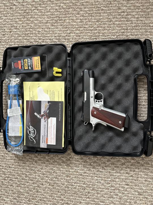 Firearms & Hunting Kimber Pro Carry II, two tone, .45 acp, 4" barrel. Comes with one mag, original box, manual and take down wire. Has XS tritium sights. No trades, cash only. Log in or register to post comments