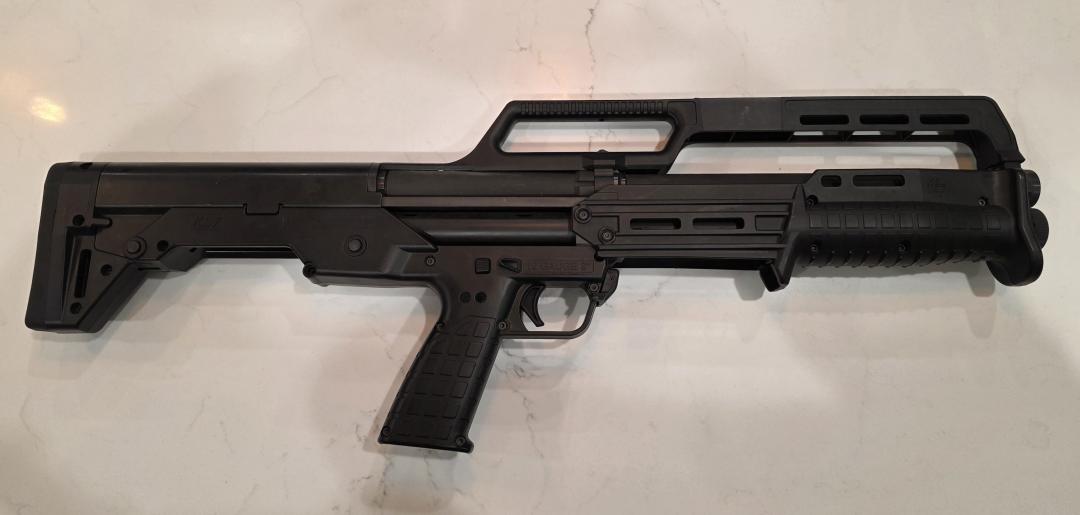 Keltec ks7. Super cool looking unique shotgun. I have too many shotguns and want a new suppressor so this needs a new home. Always fun to play with at the skeet shoots. Eats anything from minishells to 3" (but those do beat up your shoulder).