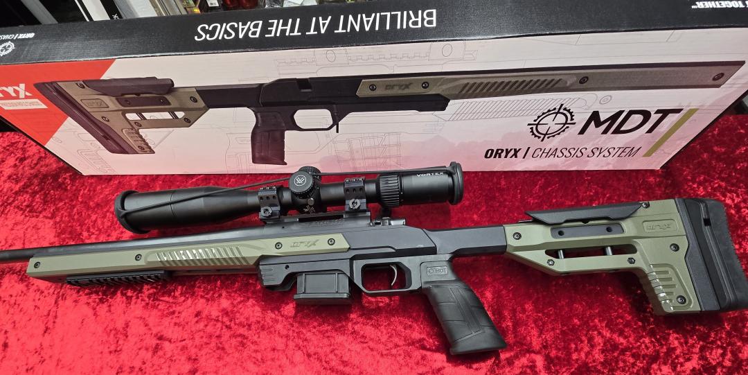 The green is an ORYX chassis on a Howa Mini 1500. $360 rifle not included in this price stock only